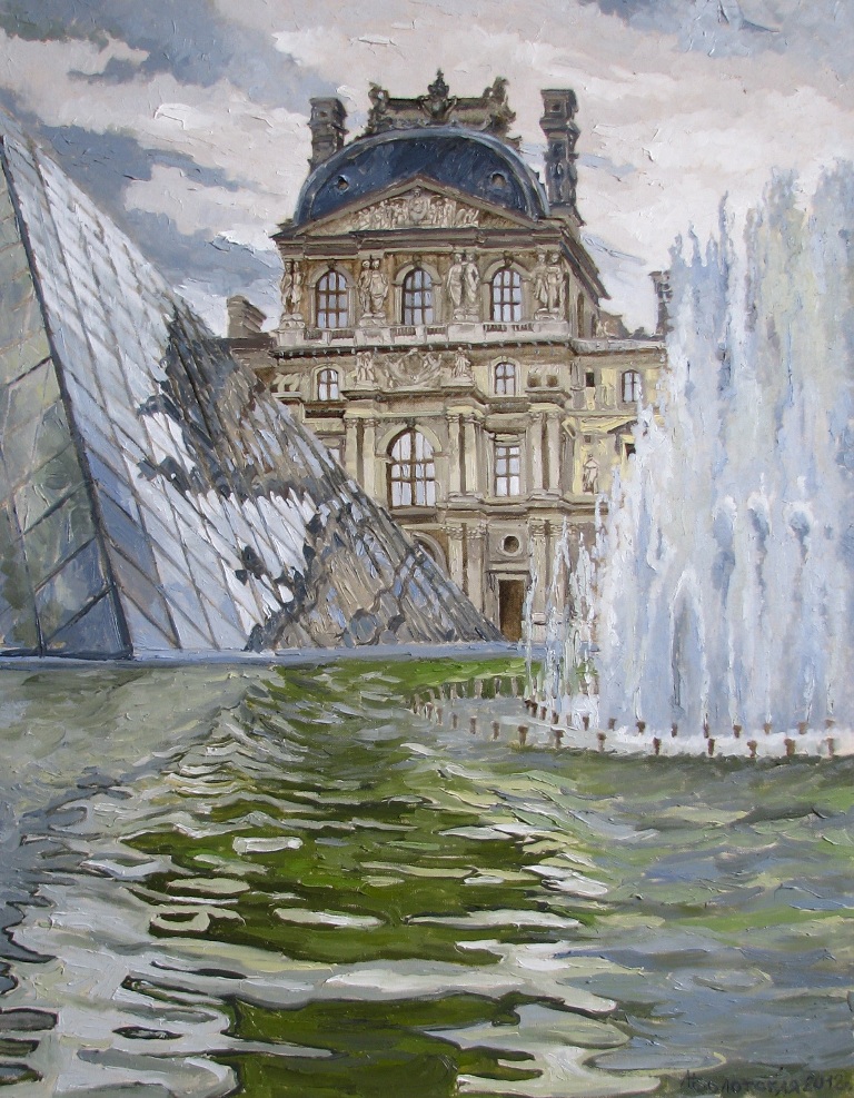 Людмила Болотская "Фонтаны Лувра" 90х70 х.м. 2012г. (Париж. Франция)